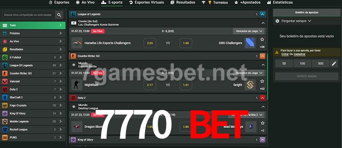O 7770 bet oferece uma grande seleção de opções de apostas em e-sports com probabilidades competitivas